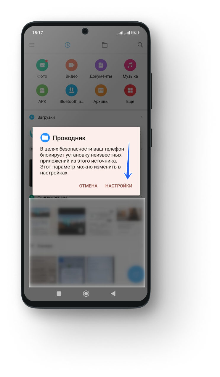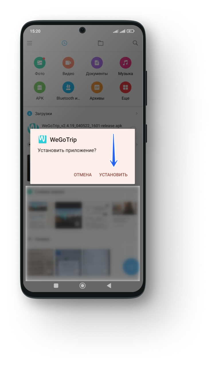 2. Откройте менеджер файлов, выберите нужный файл и нажмите «Установить».
